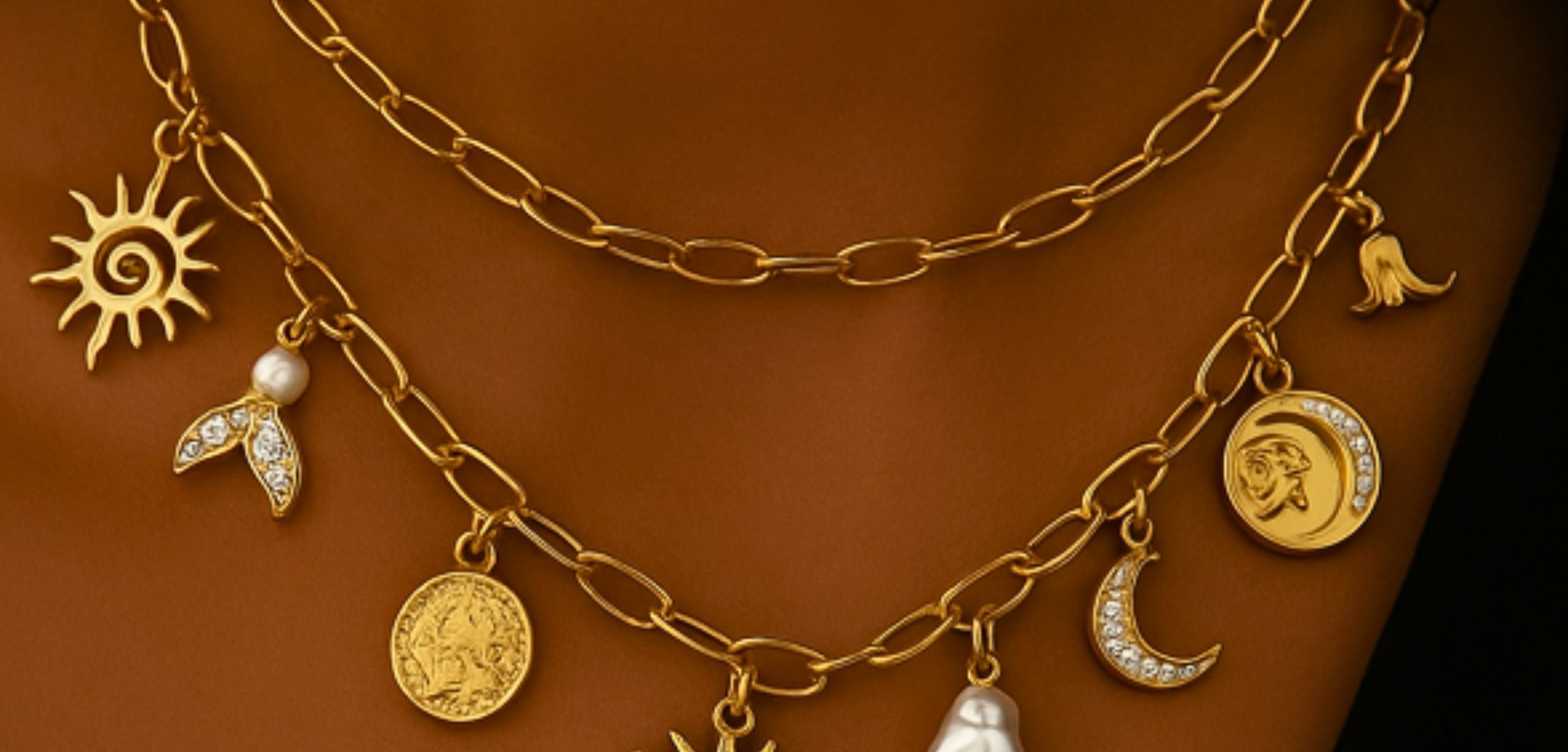 Vous choisissez chaque détail : la chaîne, les charms, les symboles qui vous parlent, ceux qui ont du sens pour vous, et le type de fermoir.
